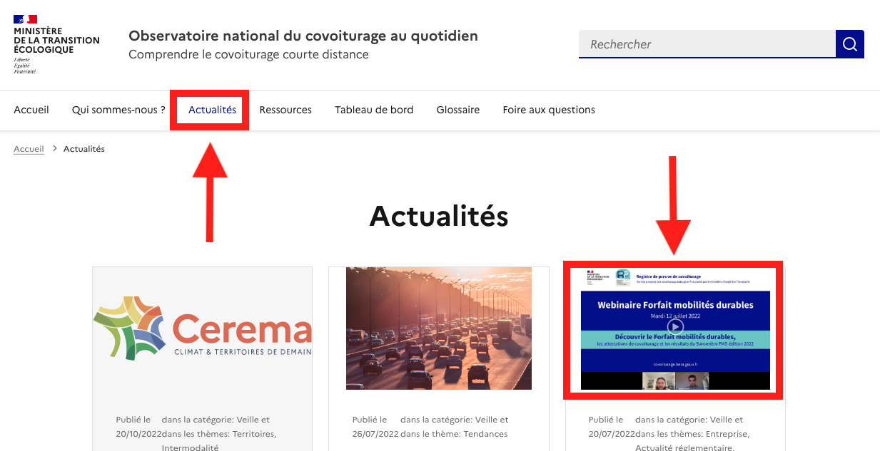 ### Étape 2 - Je consulte les actualités pour en apprendre davantage sur le covoiturage